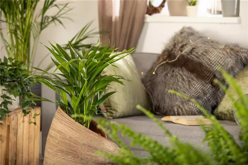 Mit ihren feinen, fächerartigen Wedeln sorgt die Areca-Palme für tropisches Flair in jedem Raum. Sie ist nicht nur schön, sondern verbessert auch spürbar das Raumklima – ganz ohne großen Pflegeaufwand.