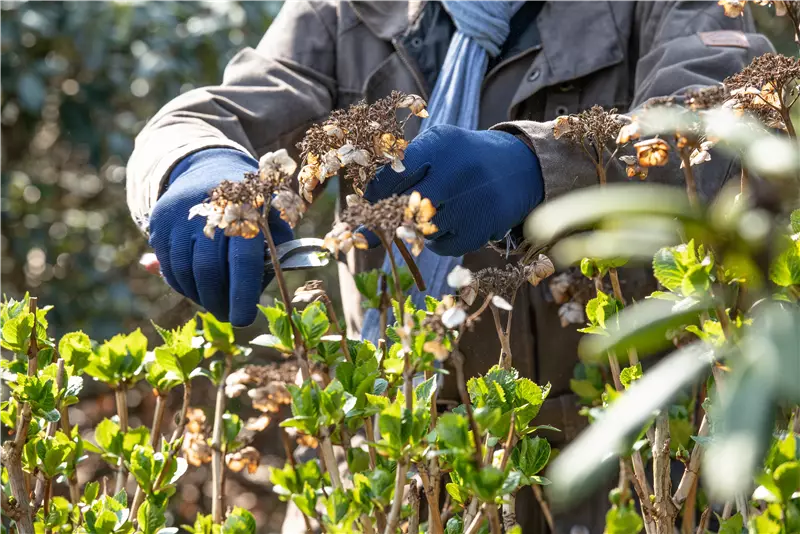 Damit sich viele neue Blüten bilden können, müssen die alten Blütenstände entfernt werden. Das ist vor allem bei den Blütensträuchern wie Hortensien der Fall. Damit die Pflanzen im Frühling so richtig durchstarten können, werden die alten Blütenstände abgeschnitten.