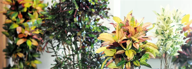 Der Kroton (Codiaeum variegatum) wird auch als Wunderstrauch bezeichnet und ist mit seinen bunten spitzen Blättern ausgesprochen dekorativ. Er ist eine sehr pflegeleichte Pflanze und daher auch für unerfahrene Pflanzenpfleger geeignet. Der Wunderstrauch stammt aus Südostasien und ist in subtropischen sowie tropischen Regionen eine beliebte Park- und Gartenpflanze. In ihrem natürlichen Lebensraum kann die strauchförmig wachsende Pflanze sogar über 2 m hoch werden. Damit sich die hübsche Blattfärbung besonders schön entwickelt, benötigt sie einen sehr hellen Standort. Die Morgen- oder Abendsonne mag der Wunderstrauch am liebsten. Steht er an einem Südfenster, muss eine Gardine die Pflanze vor praller Mittagssonne schützen. Im Sommer und im Winter schätzt der Kroton Zimmertemperatur und eine hohe Luftfeuchtigkeit. Er genießt tägliches Besprühen mit kalkarmem Wasser für mehr Luftfeuchtigkeit. Plötzliche Temperaturschwankungen und Zugluft mag er jedoch gar nicht. Halten Sie das Substrat stets nur leicht feucht. Staunässe kann zum Verfaulen der Wurzeln und Trockenheit zum Abwerfen der Blätter führen.