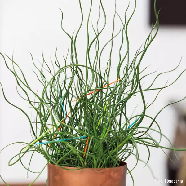Die recht anspruchslose Korkenzieherbinse (Juncus effusus spiralis) mag draußen am liebsten feuchte Standorte. Dank ihrer ausgefallenen Triebe hat sie es bis in unsere Wohnräume geschafft. Diese sind wellenartig verdreht und in einem frischen Grasgrün. Sie können gut 30 cm und noch länger werden. Diese Pflanze trägt auch den romantischen Beinamen „Liebeslocke“. Ihr Lieblingsplatz ist möglichst sonnig und hell. Gegossen werden muss sie reichlich. Staunässe ist von ihr sogar erwünscht. Kurzzeitiges Antrocknen der Substratoberfläche wird noch toleriert. Völliges Austrocknen sollte man ihr jedoch nicht zumuten. Verwenden Sie daher idealerweise als Substrat Teicherde. Diese ist aufgrund ihrer Beschaffenheit für viel Feuchtigkeit ausgelegt und neigt nicht zur Schimmelbildung.