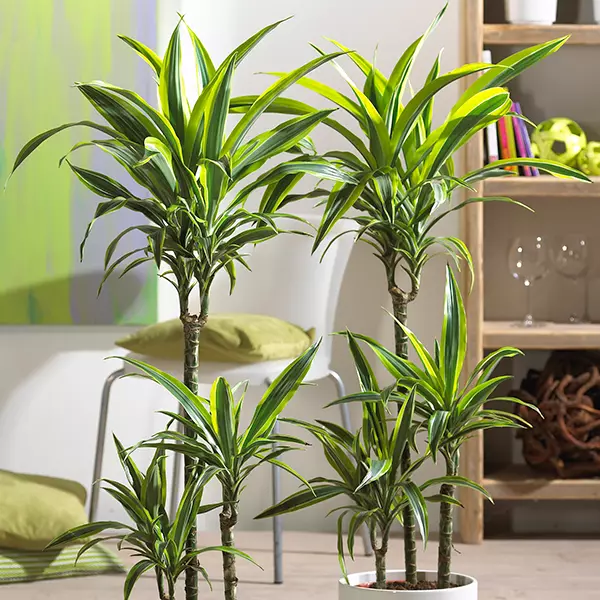 Der Drachenbaum (Dracaena fragrans) ist im tropischen Afrika heimisch. Die Auswahl an Formen und Sorten ist enorm. Der Drachenbaum ist mit ein- und mehrfarbigen Blättern erhältlich. Dank der vielen verschiedenen Größen und Formen ist für jeden Geschmack und Platzbedarf ein Pflänzchen dabei. Die Dracaena fragrans eignet sich für sonnige bis halbschattige Standorte. Auch die Mittagssonne macht ihr nichts aus, wenn sie daran gewöhnt ist. Lassen Sie das Substrat zwischen den Wassergaben an-, aber nicht austrocknen. Staunässe wiederum wird nicht vertragen. Bei Ballentrockenheit, vor allem wenn sie häufiger oder für längere Zeit auftritt, können sich die Blattspitzen und -ränder braun färben. Der Drachenbaum mag es das ganze Jahr über warm und sollte im Winter nicht für längere Zeit unter 15 °C platziert werden. Gelegentliches Besprühen oder Abduschen dankt er Ihnen mit strahlenden Blättern. Buntlaubige Drachenbaum Exemplare stehen lieber hell, damit ihre Blattzeichnung erhalten bleibt. Die rein grünen Sorten dürfen auch schattiger stehen.