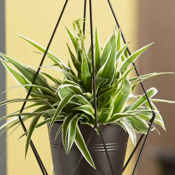 Die Grünlilie (Chlorophytum comosum) ist ein klassisches Anfängergewächs und verzeiht gutmütig den ein oder anderen Pflegefehler. Sie ist anspruchslos, pflegeleicht und fühlt sich fast in jedem Raum wohl. Von sonnigen über halbschattige bis schattige Bereiche – fast jeder Standort ist möglich. Zudem ist die Grünlilie eine der besten Pflanzen zur Verbesserung des Raumklimas. Ihr dichter Blattschopf aus langen, schlanken Blättern mit zahlreichen Kindeln kommt besonders gut in Ampeln zur Geltung. Die Grünlilie ist außerordentlich dekorativ und eine der beliebtesten Zimmerpflanzen.