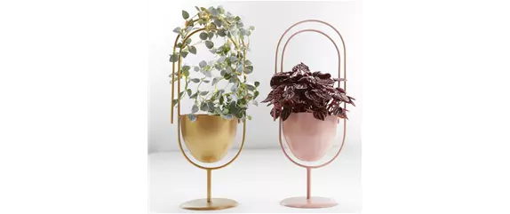 In einem Topf mit Fuß und Henkel ist der Zwergpfeffer die goldene bzw. rosafarbene Mitte.