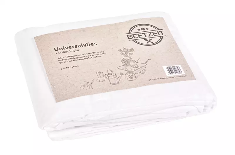 Das UNIVERSALVLIES von BEETZEIT schützt junge Gemüsepflanzen zuverlässig vor Wind, kühlen Nächten und unerwünschtem Vogelfraß. Es liegt leicht auf, lässt Licht und Luft durch und schafft so ein ausgeglichenes Mikroklima, in dem Pflanzen ungestört an-wachsen können.