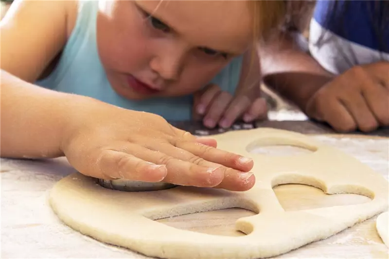 Jetzt kommen die Ausstechförmchen zum Einsatz. Damit könnt ihr viele verschiedene Muster aus dem Salzteig ausstechen. Herzen, Sterne, Kreise und alles, was die Ausstechförmchen hergeben.