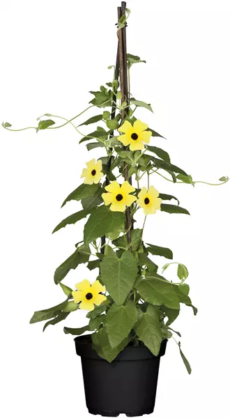 TIPP: Als Ergänzung zum Balkonkasten passt die SCHWARZäUGIGE SUSANNE (Thunbergia alata) ideal in einen Kübel auf dem Balkon. Ihre leuchtenden Blüten in Gelb- und Orangetönen greifen die Farbwelt des Kastens auf und setzen zusätzliche vertikale Akzente. An Rankhilfen wächst sie schnell nach oben und ergänzt die Bepflanzung mit lebendiger Sommerdynamik.