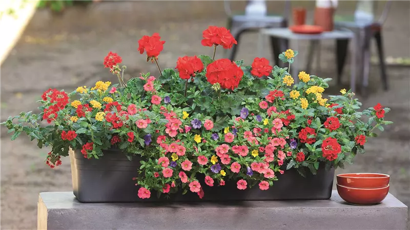Damit die Blütenpracht lange anhält, ist eine regel-mäßige Wasserversorgung wichtig. Werden verblühte Blüten entfernt, bleibt der Balkonkasten kompakt und zeigt über viele Wochen hinweg eine intensive, farbenfrohe Wirkung.