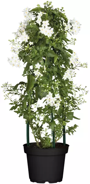 TIPP: Im Kübel entfaltet der SOMMERJASMIN seine Stärke besonders gut. Als Pyramide gezogen zeigt er über viele Wochen helle Blüten, begleitet von einem feinen Duft.