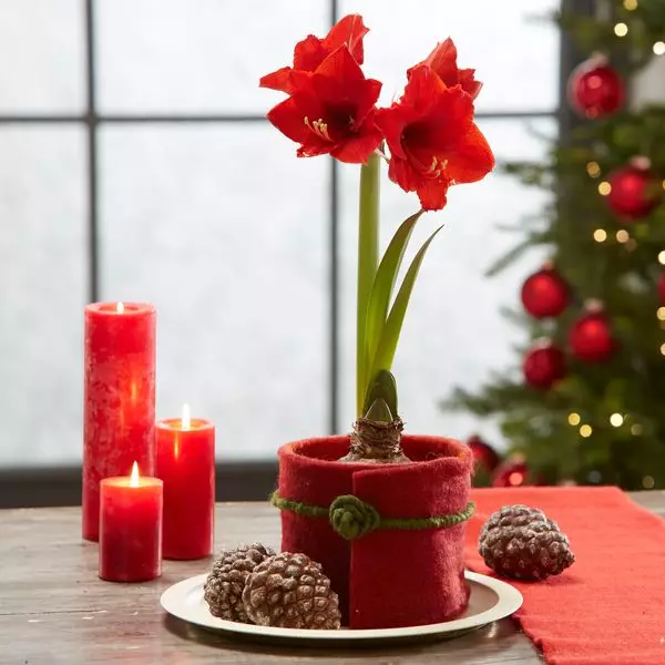 Besonders pflegeleicht und außergewöhnlich ist der Ritterstern mit gewachster Knolle. Kein Topf, keine Erde, kein Gießen!