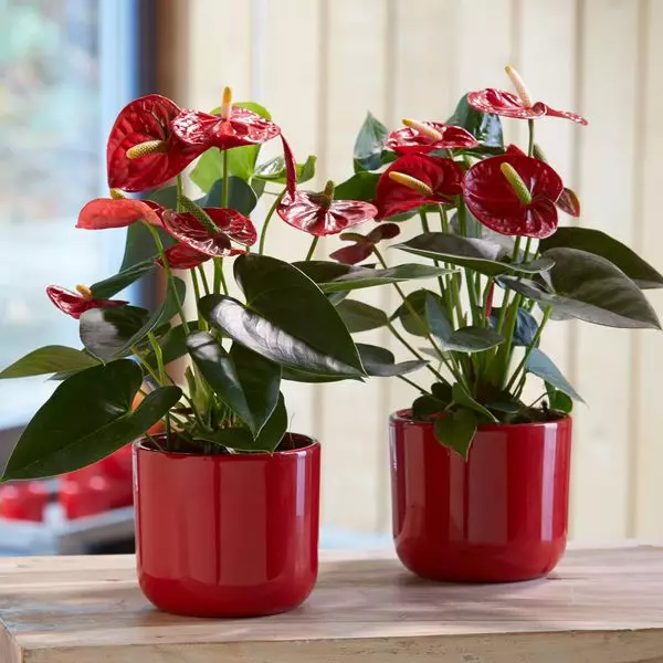 Im Winter sollte diese Anthurie hell und eher kühl bei maximal 18 °C stehen, das regt die Blütenbildung an. Besprühen Sie die Pflanzen zudem regelmäßig mit kalkarmem Wasser.