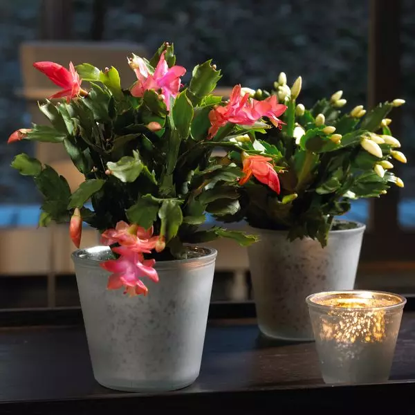 Der Weihnachtskaktus (Schlumbergera) ist wie der Weihnachtsstern eine Kurztagspflanze und entgegen seiner Bezeichnung ganz und gar nicht stachelig. Seinen botanischen Namen verdankt die Pflanze Frédéric Schlumberger, einem französischen Kakteenzüchter. Stellen Sie ihn in ein höheres Gefäß, da seine Triebe leicht überhängen.