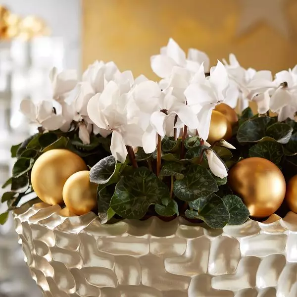 Wahre Blühwunder auf der Fensterbank: In Weiß fügen sich Alpenveilchen (Cyclamen persicum) perfekt in jedes Weihnachtsarrangement ein. Einen weiteren Vorteil birgt das beliebte Topfpflänzchen noch dazu: Es verbessert auf hübsche Art und Weise das Raumklima, denn es sorgt für die richtige Luftfeuchtigkeit. Cyclamen bevorzugen einen hellen und kühlen Standort ohne direkte Sonneneinstrahlung. Während der Blüte benötigen sie ausreichend Wasser, Staunässe muss vermieden werden.