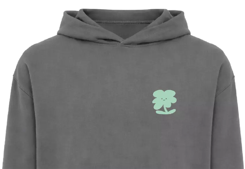• Hoodie: kleines Icon vorn, großer Print hinten