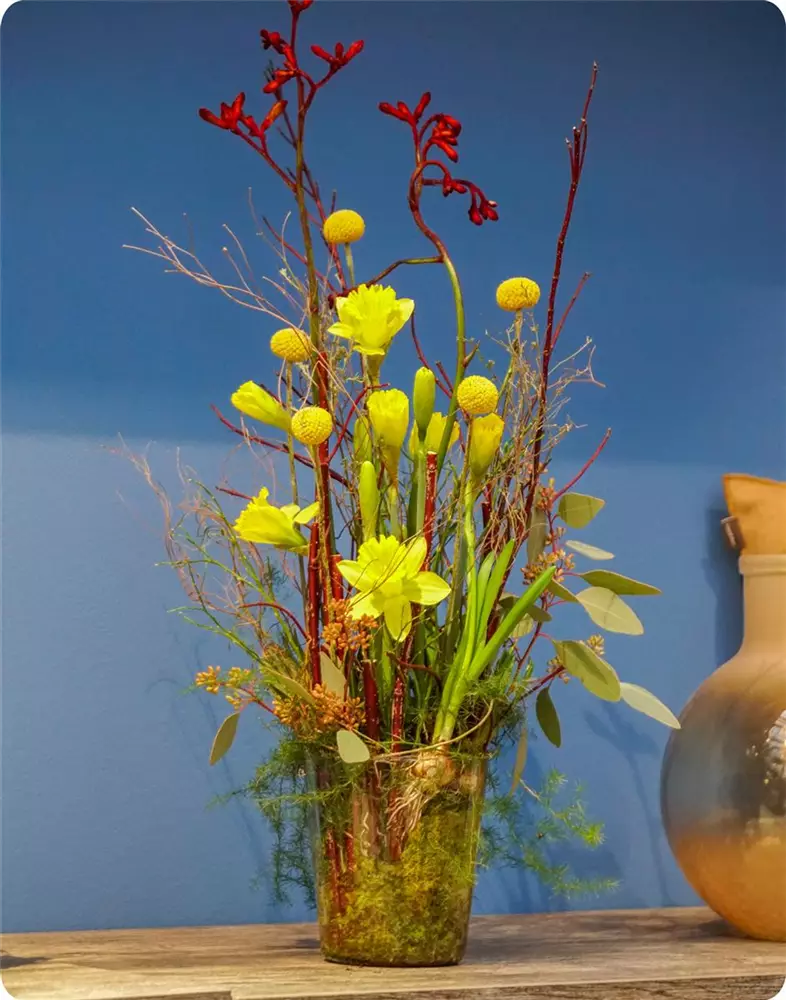 In unserem Floristik-Workshop gestaltest Du ein frühlingshaftes Gesteck – wahlweise in einer Schale in Rot und Gelb oder in einer Vase in Gelb. Gemeinsam mit Carola Kiefl lernst Du Schritt für Schritt die Technik des Steckens und erhältst wertvolle Tipps zu Materialauswahl, Aufbau, Proportionen, Haltbarkeit und Pflege.
