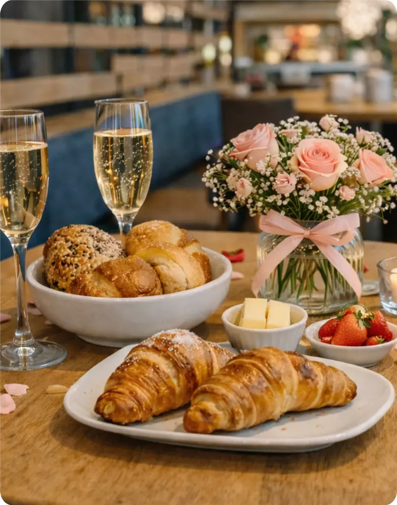 Macht euer Frühstück im Café Kiefl zu einem Herzensmoment: Mit dem Valentinstag-Upgrade erwartet euch ein liebevoll dekorierter Tisch und besondere Extras für eure Auszeit zu zweit.