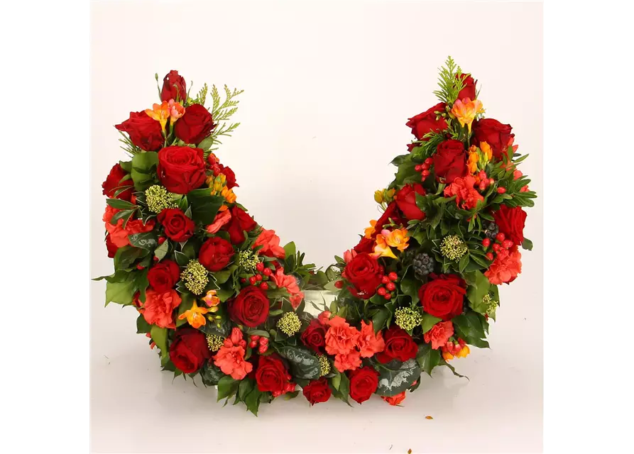 Bitte beachten Sie: Die gezeigten Bilder dienen als Referenz. Ihr Werkstück wird persönlich für Sie angefertigt, es kommt zu Abweichungen in der Blütenauswahl je nach Jahreszeit. Ihr Werkstück wird dieselbe Farbigkeit und Gestaltung aufweisen nicht jedoch die gezeigten Blüten eins zu eins.