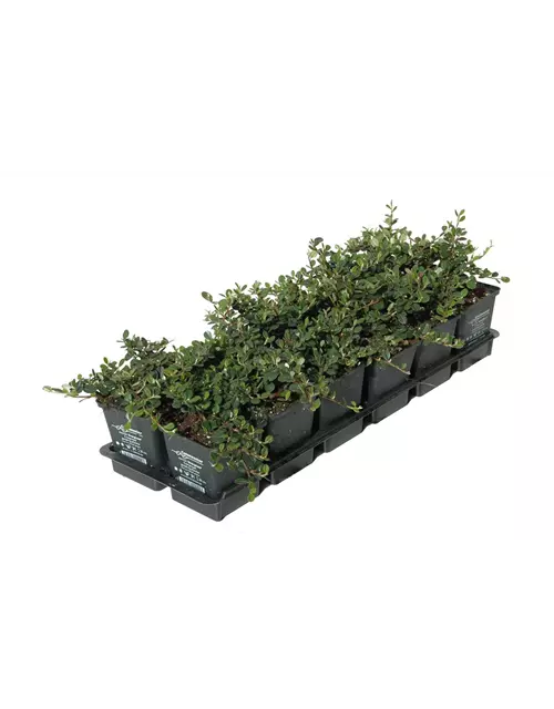 • kompakter sehr flacher Wuchs, sehr kleinblättrig, grünes Laub, rötliche Winterfärbung.