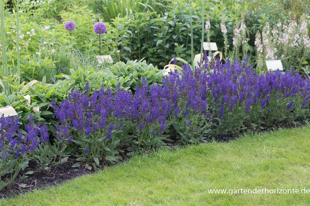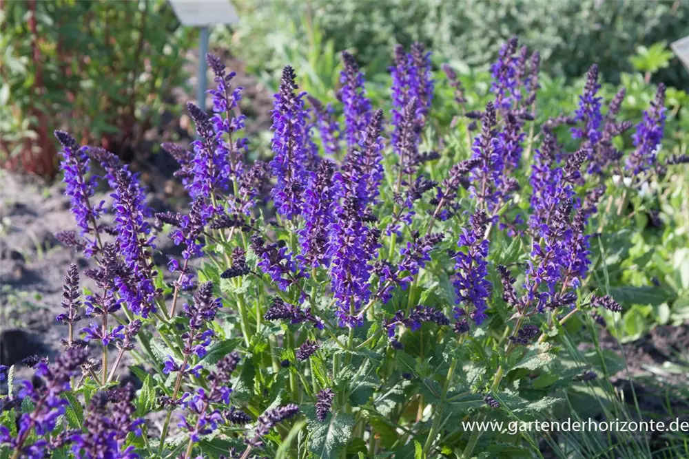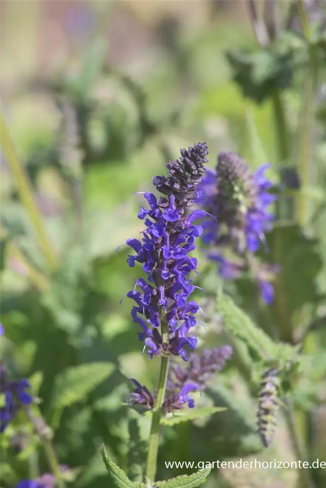Salvia nemorosa 'Viola Klose' bildet lippenförmige, in Rispen angeordnete, dunkelblaue Blüten ab Mai. Diese verströmen einen angenehmen Duft. Bei richtiger Pflege Nachblüte im August.