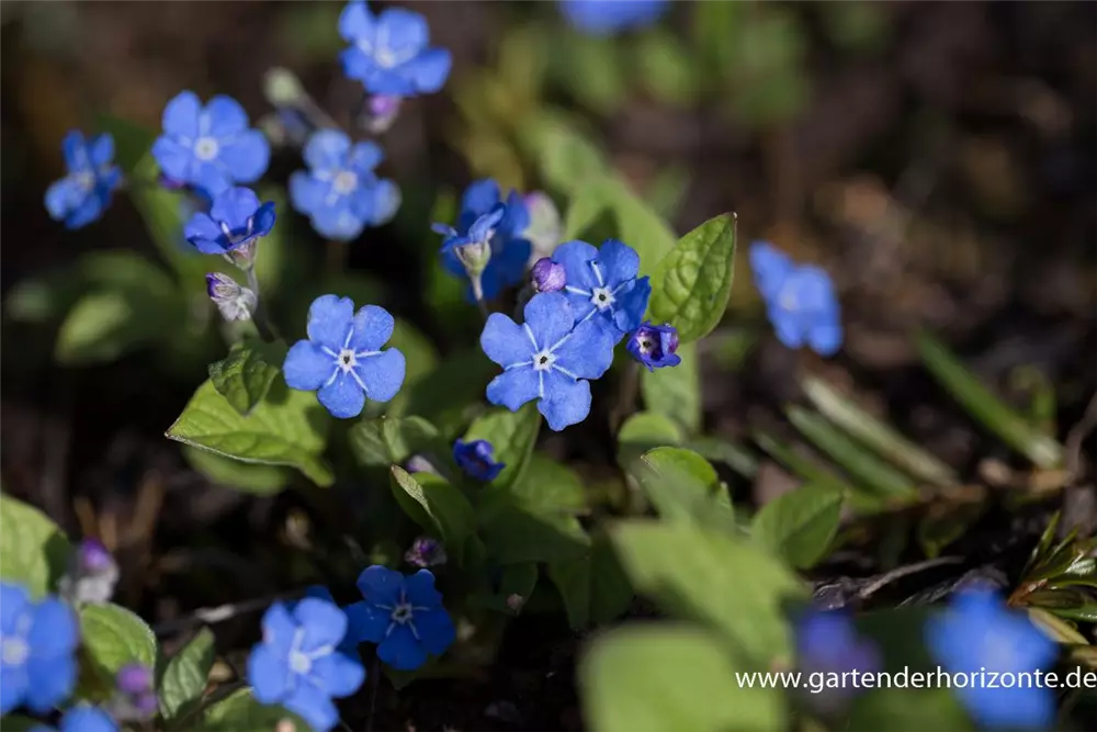 Omphalodes verna bildet in Trauben angeordnete, blaue Blüten ab März.