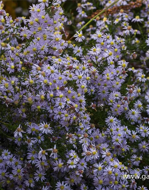 Die Garten-Schleier-Aster 'Photograph' (Aster cordifolius) ist eine aufrechte, horstbildende Staude, die von September bis Oktober hellblaue, körbchenartige, in Rispen angeordnete Blüten mit einem angenehmen Duft bildet. An einem sonnigen Standort mit durchlässigem, nährstoffreichem Boden erreicht sie gewöhnlich eine Höhe von ca. 1,2 m und wird ca. 60 cm breit. Die Garten-Schleier-Aster 'Photograph' ist gut frostverträglich.