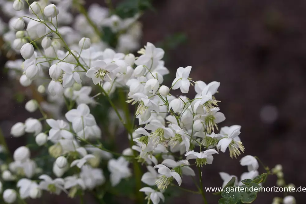 Thalictrum delavayi 'Splendide White'® bildet in Rispen angeordnete, weiße Blüten ab Juni.