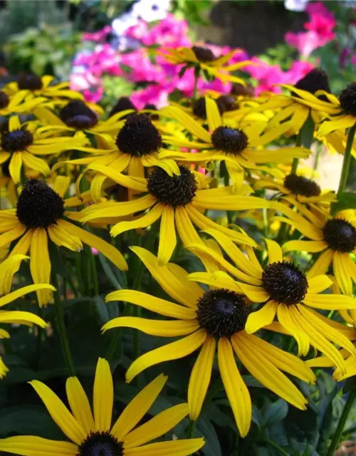 Rudbeckia fulgida var. sullivantii 'Little Goldstar' bildet gelbe Blüten ab Juli.